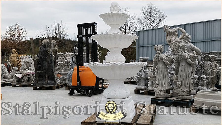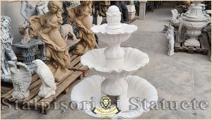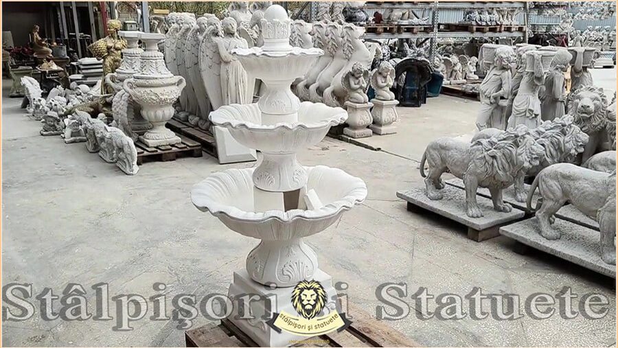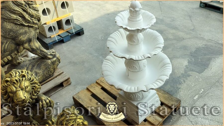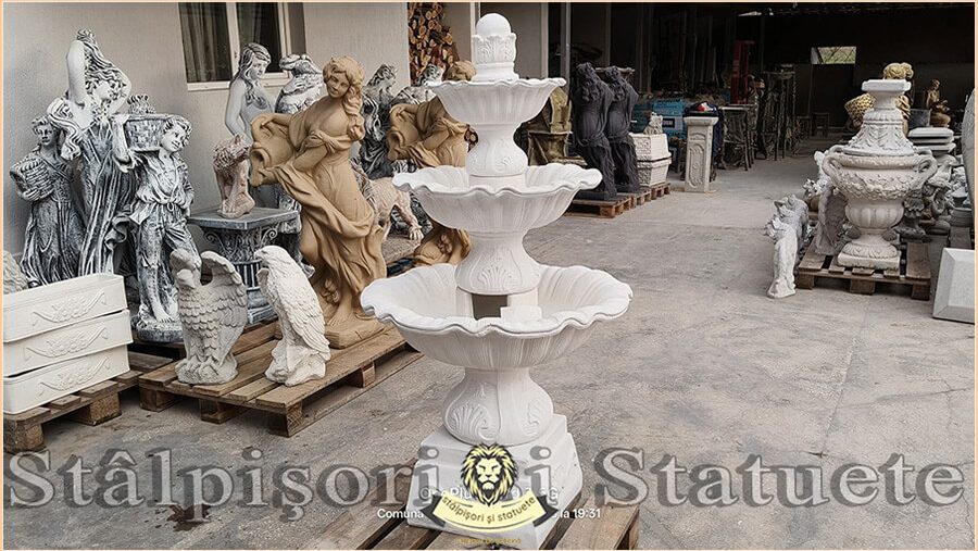 Fântână arteziană cu 3 farfurii, alb marmorat, model F2.