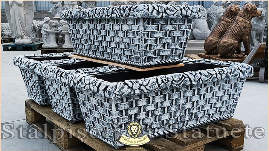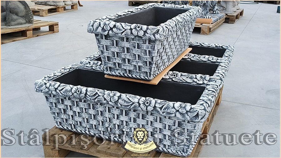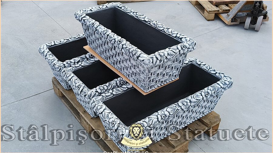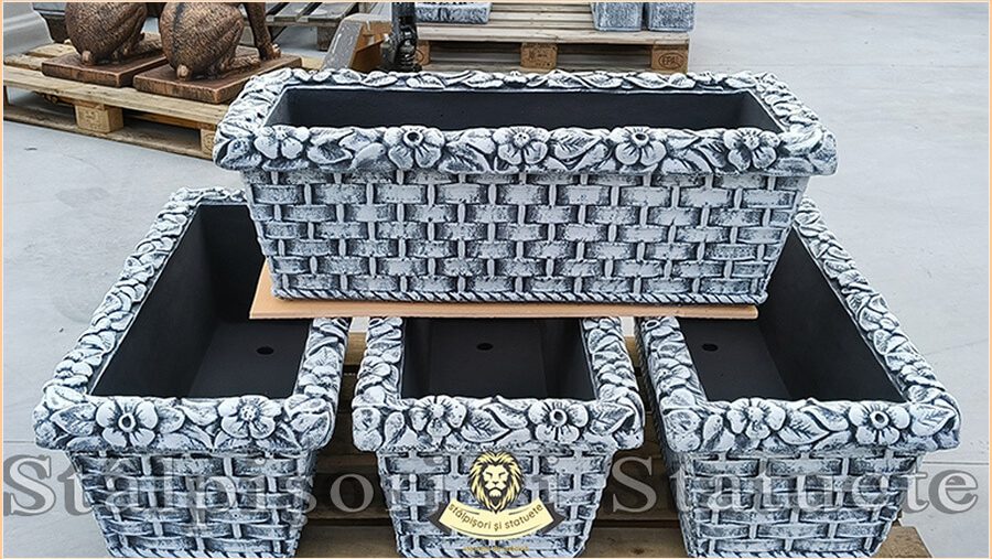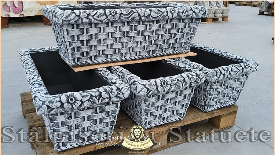 Set 4 jardiniere ornament flori, gri patinat, model J14.