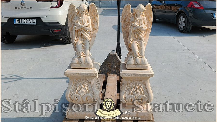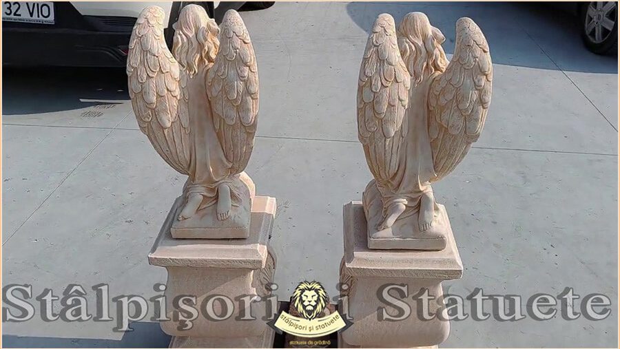Înălțime: 100 cm. Lățime soclu: 28×25 cm. Greutate: 168 kg. (set 2 îngerași+2 socluri.)
