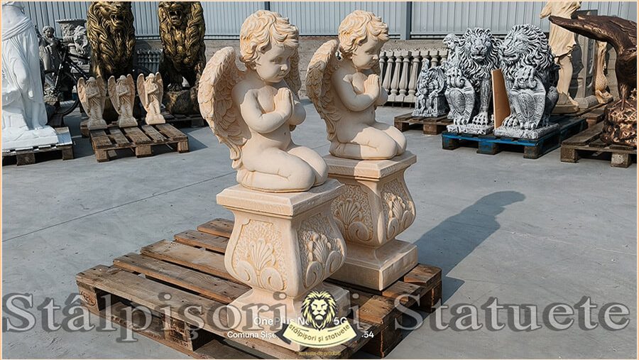 Înălțime: 96 cm. Lățime soclu: 28×25 cm. Greutate: 194 kg. (set 2 îngerași+2 socluri.)