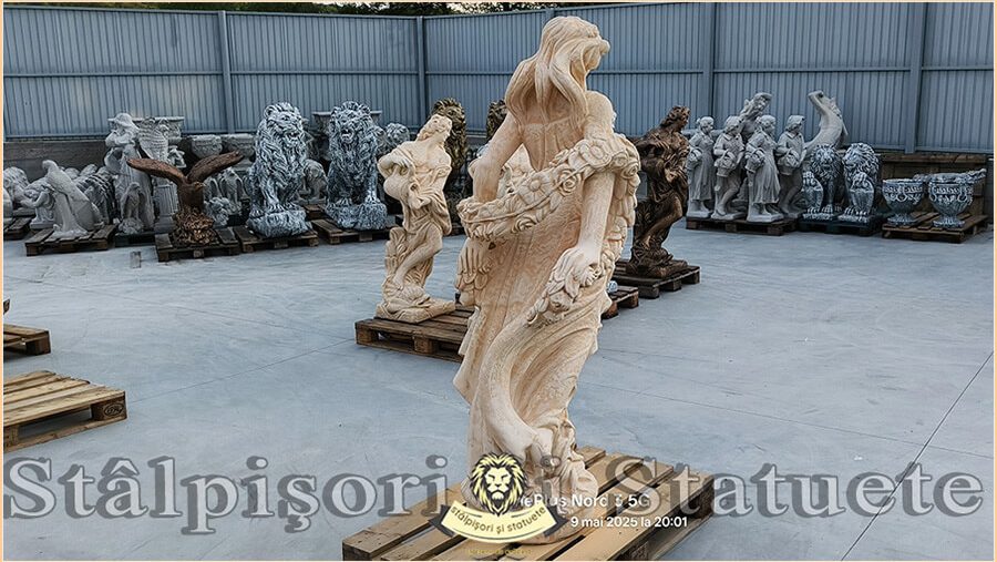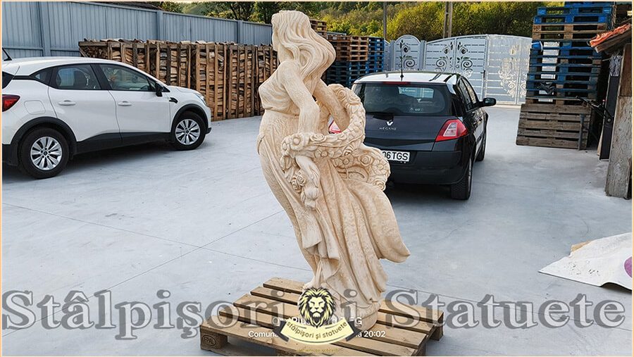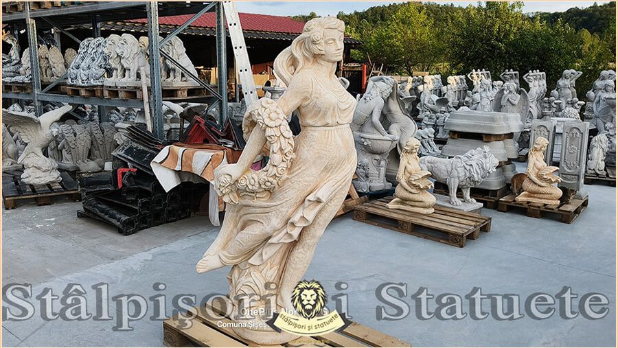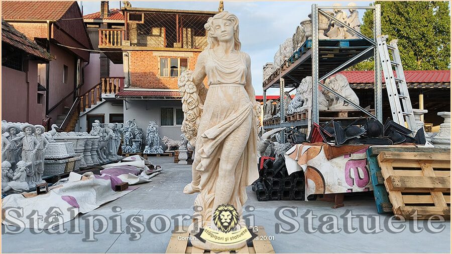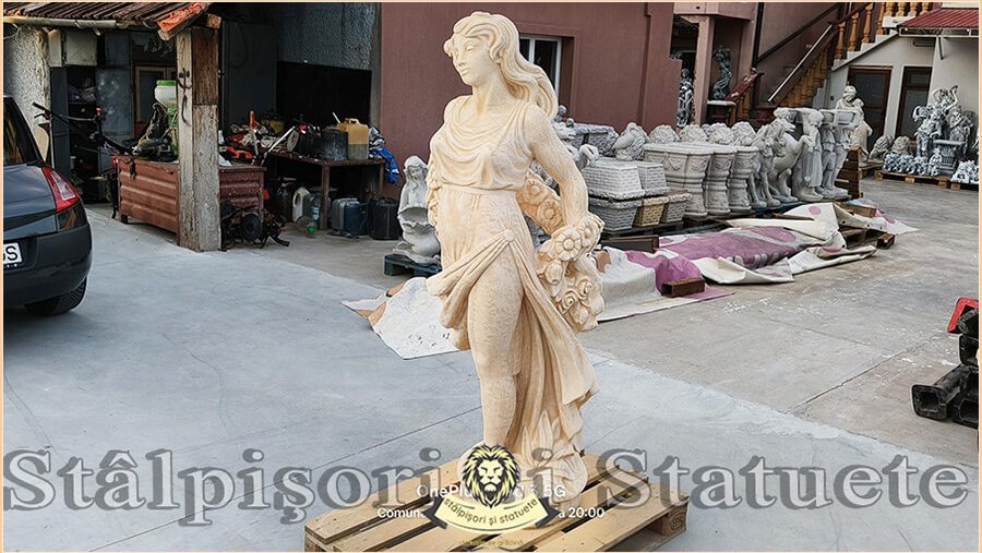 Statuetă domnița cu flori, galben antichizat, model S50.