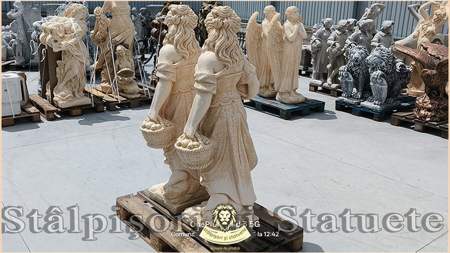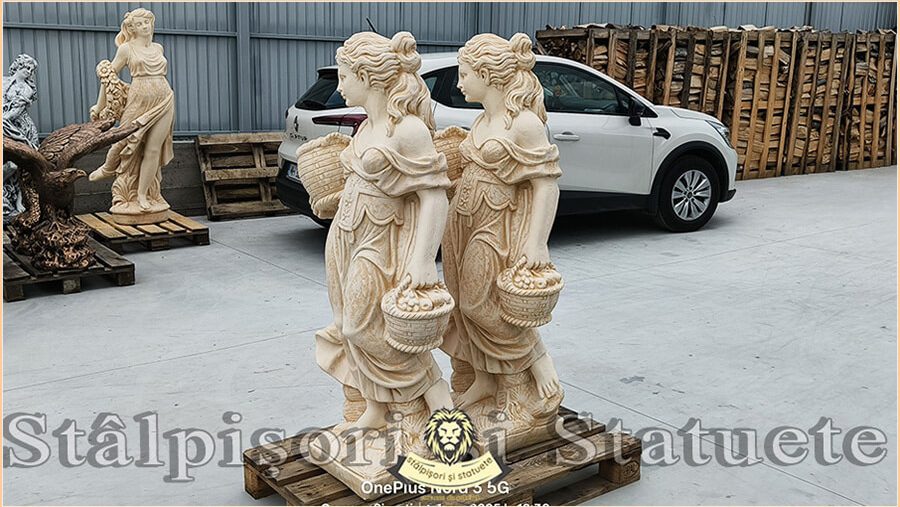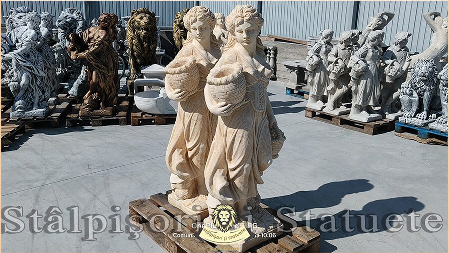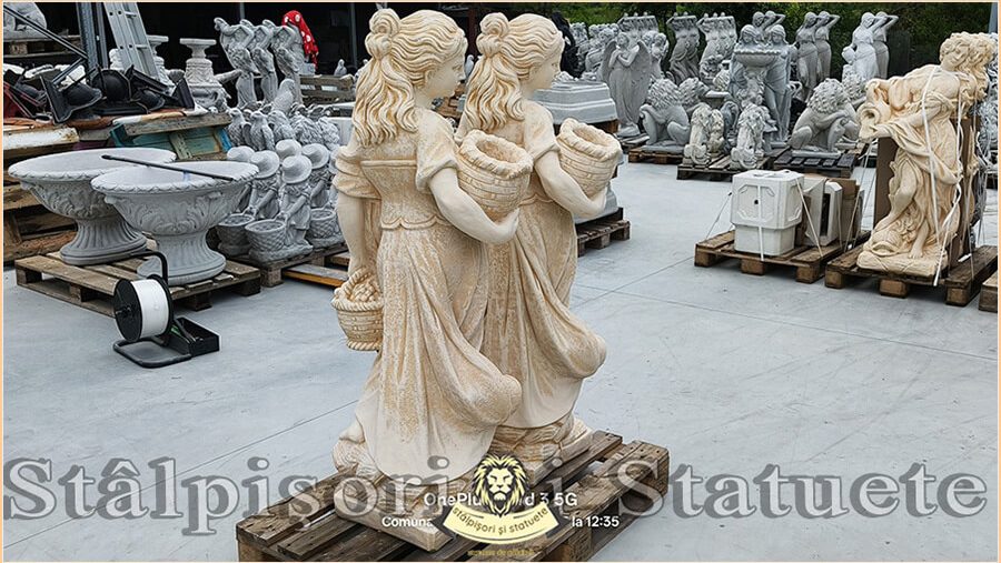Statuetă fata cu coșulețe, galben patinat, model S23.