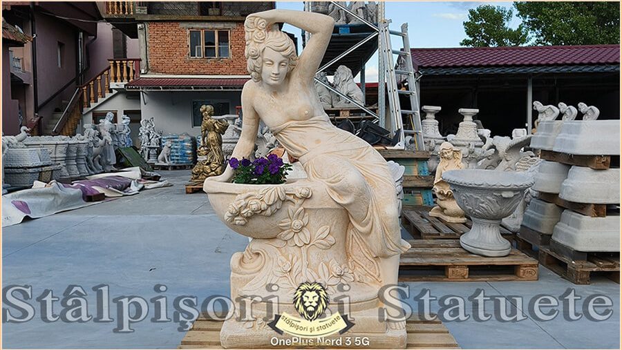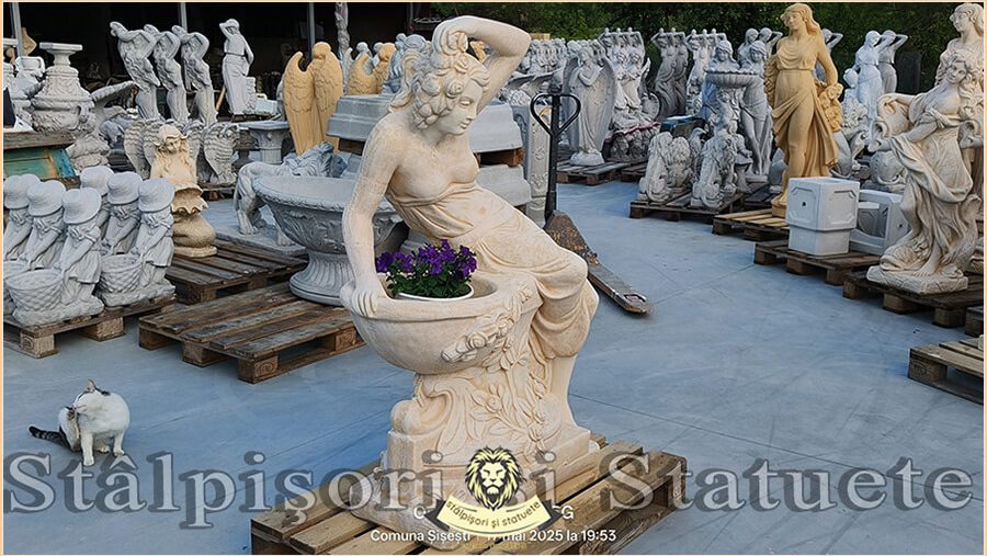 Înălțime: 141 cm. Diametru bază: 42×80 cm. Greutate: 400 kg ! - Material: beton aditivat cu agregate concasate. Disponibilitate: din stoc și la comandă.