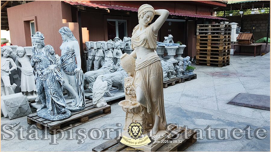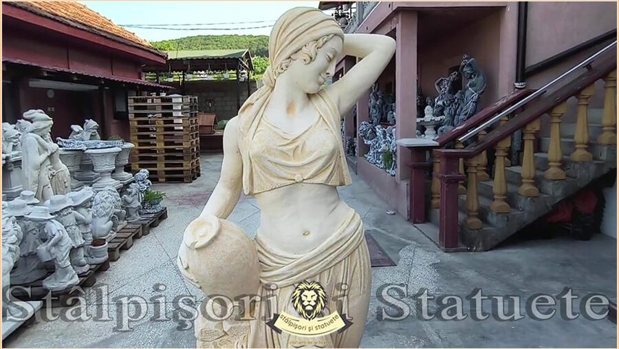 Statuetă țărăncuța la cișmea, galben patinat, model S51.