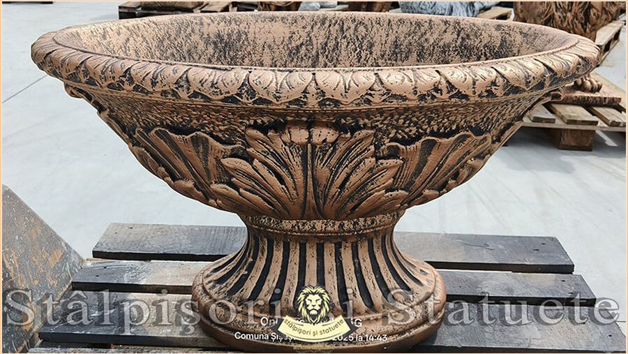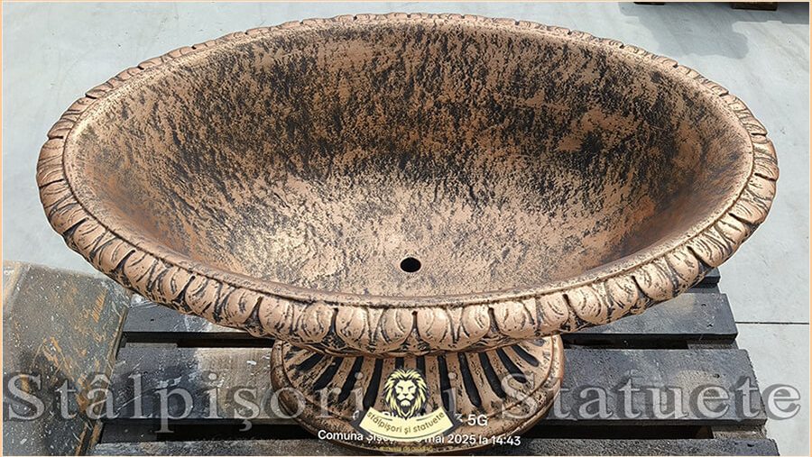Înălțime: 60 cm. Diametru sus: 100,00×65 cm. Diametru bază: 53×35 cm. Greutate: 124 kg.