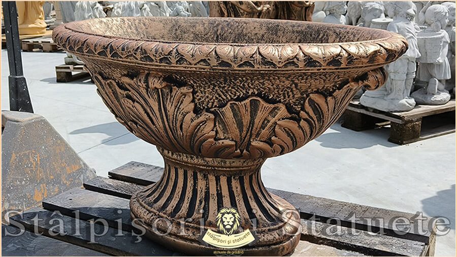 Vază mare, ornament stejar, arămiu antichizat, model V5.